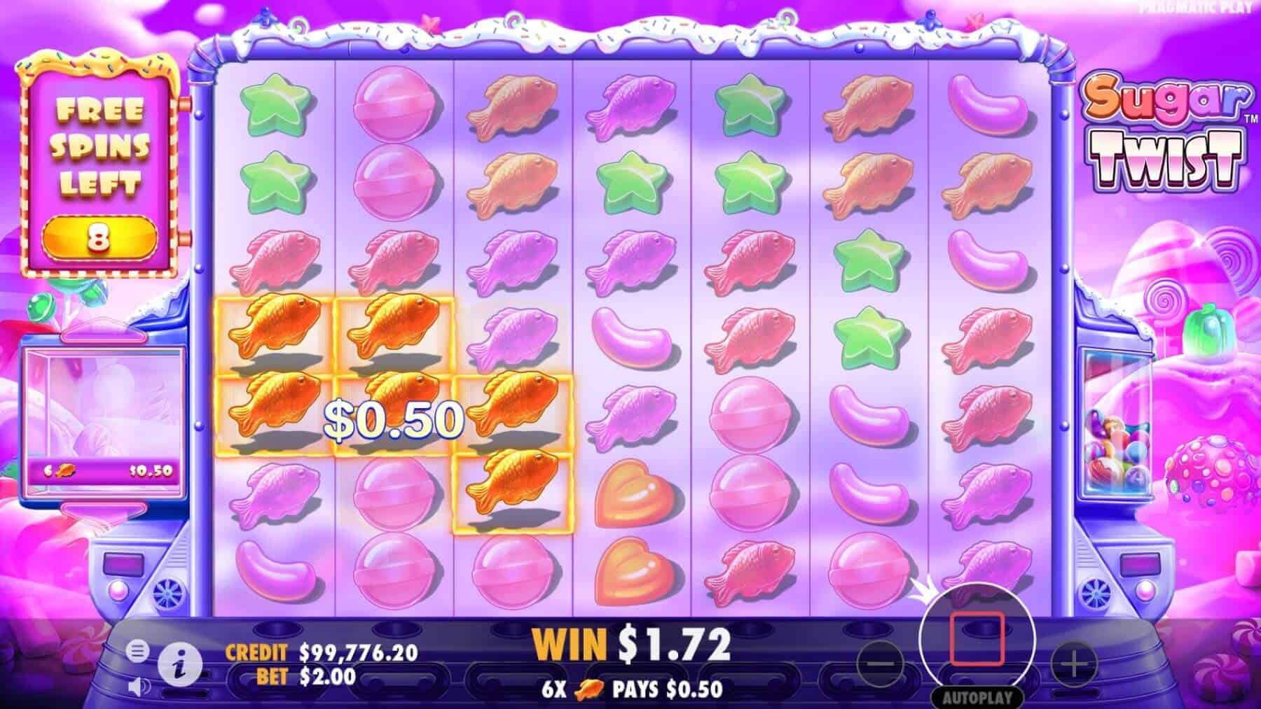 Yang paling ditunggu tentu saja momen pengganda besar saat freespin aktif. Bayangkan pengganda x100 muncul bersamaan dengan kombinasi kemenangan—hasilnya bisa langsung bikin saldo melonjak drastis. Sensasi inilah yang membuat Sugar Twist jadi favorit banyak pemain yang mencari hiburan seru sekaligus peluang cuan besar.
